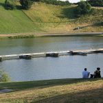 langen Ponton-Steg in den Olympiasee hinein errichtet. Auf diesem wird zu einem