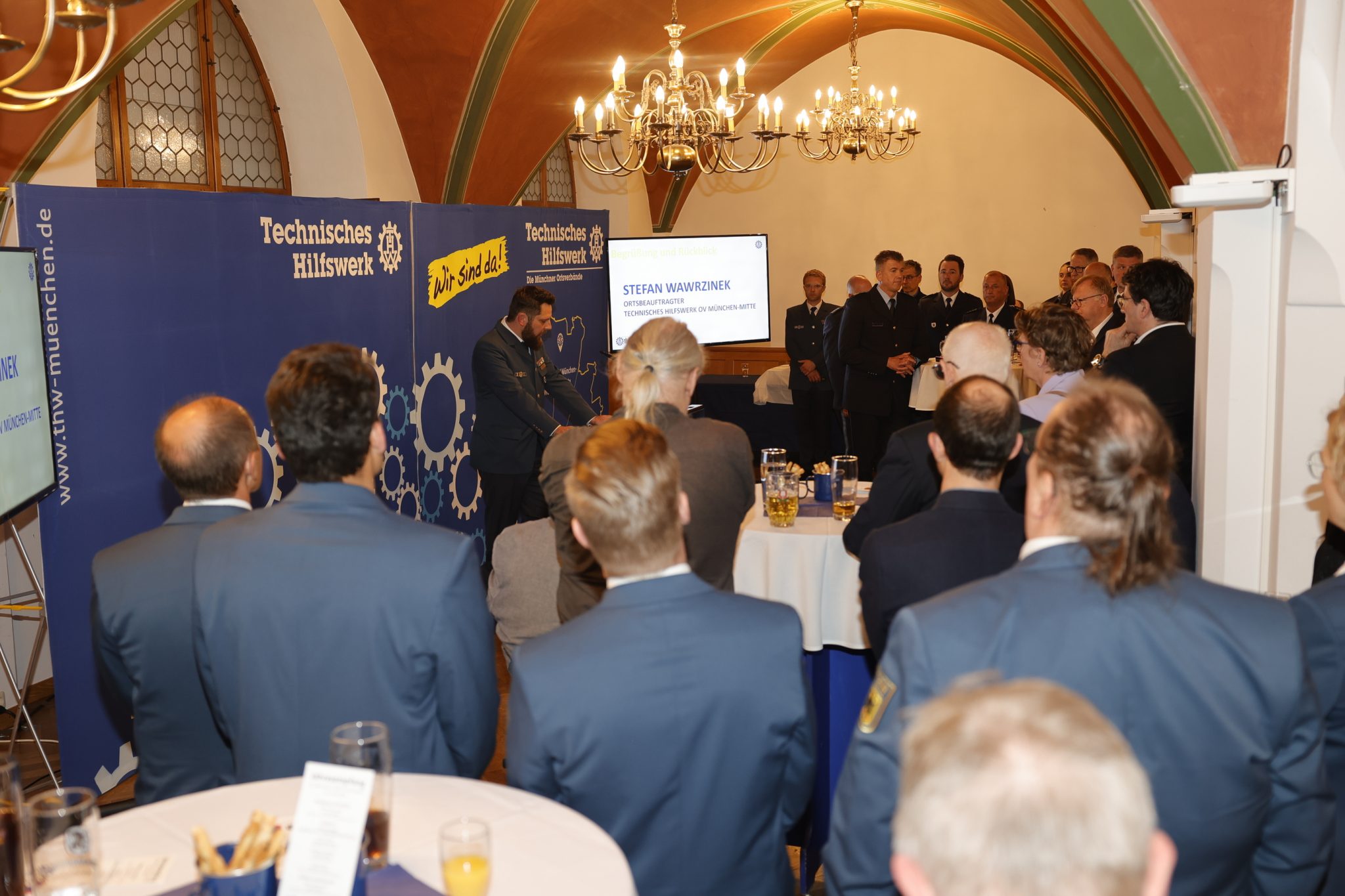 Der offizielle Teil des Abends wurde von Stefan Wawrzinek, Ortsbeauftragter des THW München-Mitte, eröffnet und moderiert. In seiner Begrüßung dankte er den Gästen für ihre Unterstützung und das kontinuierliche Vertrauen in die Leistungsfähigkeit des Münchner THW.