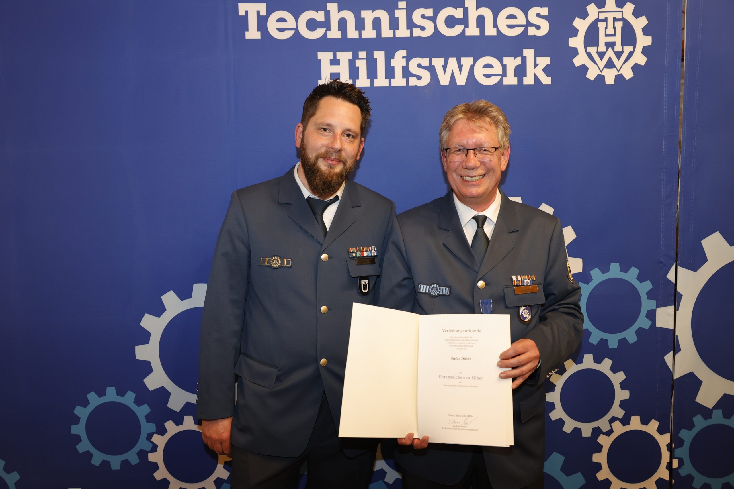 Im Rahmen seiner Ansprache nahm Tilman Gold zudem eine besondere Ehrung vor. Stefan Dichtl wurde für seinen außergewöhnlichen ehrenamtlichen Einsatz über einen Zeitraum von mehr als 40 Jahren mit dem Ehrenzeichen in Silber des Technischen Hilfswerks ausgezeichnet. Die Ehrung würdigte sein langjähriges, herausragendes Engagement für das THW und den Bevölkerungsschutz.