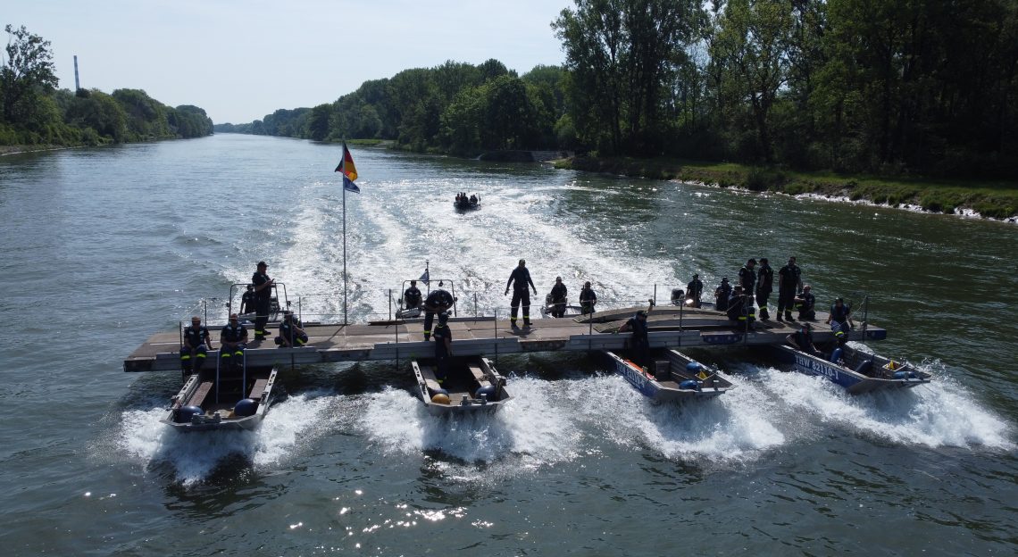 Am Pionierübungsplatz Land/Wasser in Ingolstadt haben am vergangenen Wochenende mehrere Fachgruppen Wassergefahren geübt, schwimmende Arbeitsplattformen und schwimmende Anleger zu bauen. Zusätzlich zu unserer Fachgruppe waren die Ortsverbände Ingolstadt, Neuburg, Hipolstein und Nordenham an der Übung beteiligt. Das Hauptaugenmerk lag darauf, mit Ganzpontons solide Arbeitsplattformen zu erstellen.